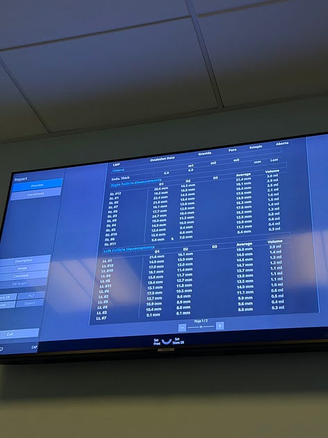 Egg count at time of consult was 10. It was 11 back in 2024. This is a negligible change since egg count constantly fluctuates. An egg count of 10-11 for both ovaries is considered “a little low”.